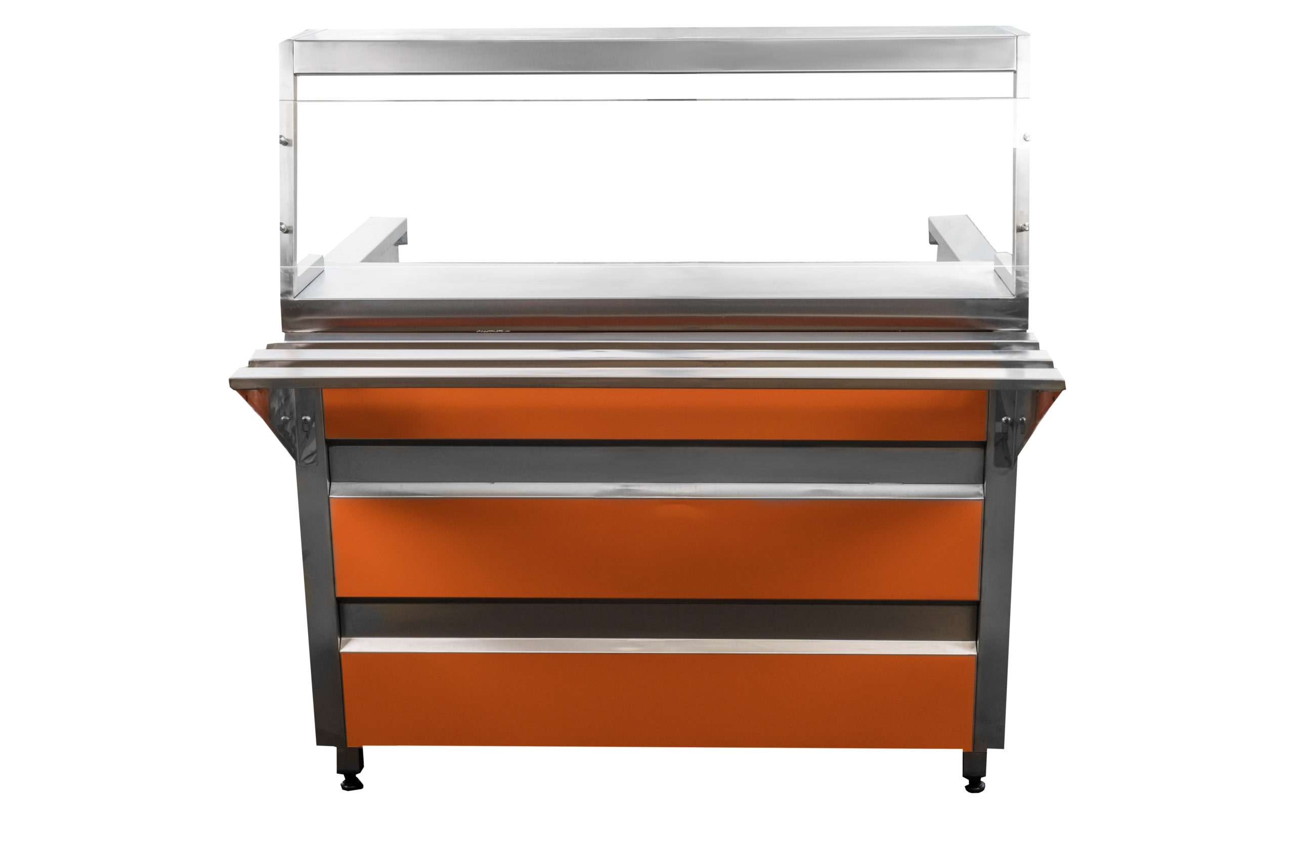 Прилавок-мармит используется в составе линии раздачи на предприятиях общественного питания и торговли для поддержания в горячем состоянии наплитной посуды с первыми блюдами и напитками. Модель оснащена 3 конфорками с регулируемой мощностью нагрева и настольной полкой с LED подсветкой. Оборудование выполнено из нержавеющей стали.