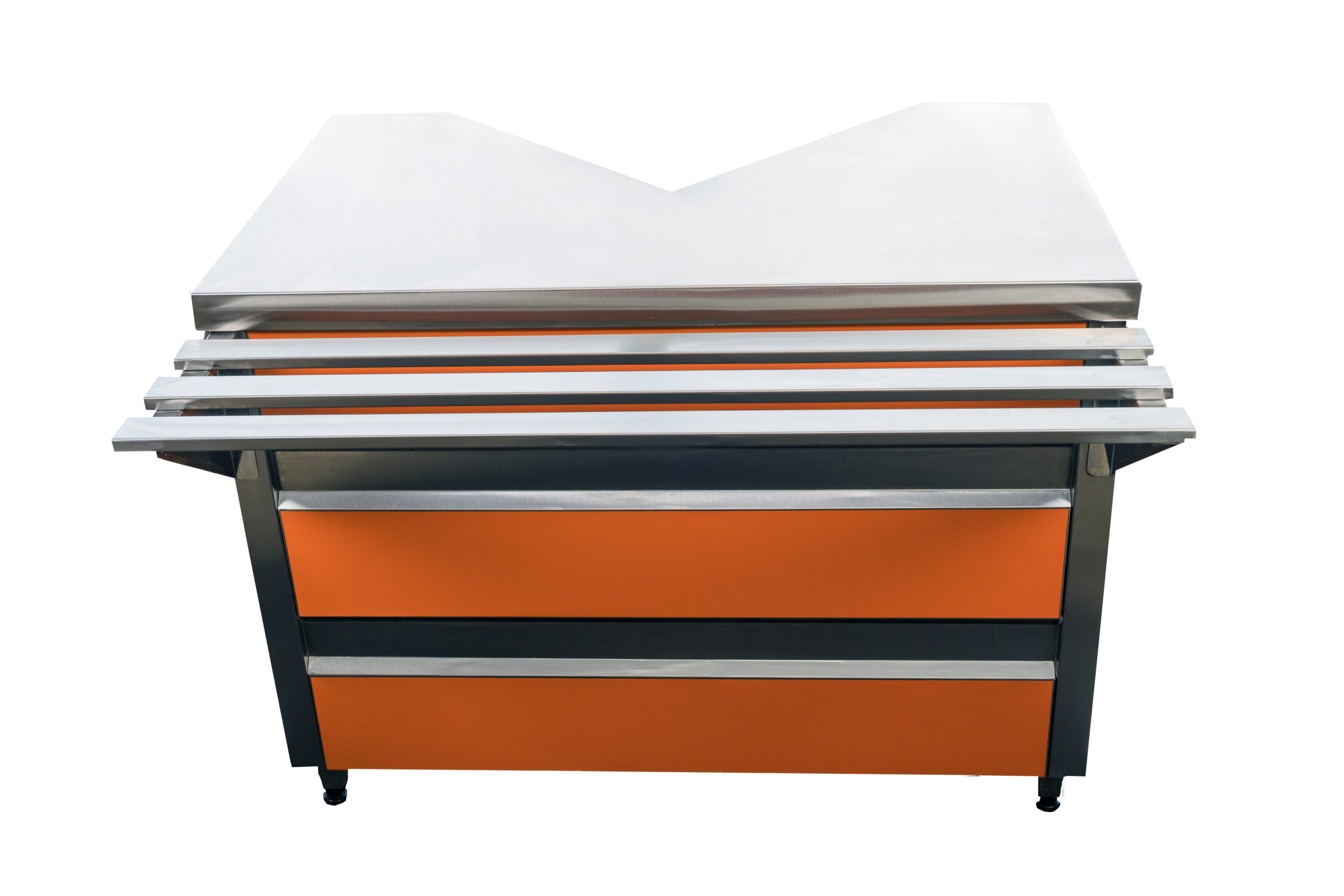 Прилавок кассовый используется в составе линии раздачи для обслуживания покупателей и проведения с ними взаиморасчетов на предприятиях общественного питания и торговли. Корпус выполнен из нержавеющей стали.